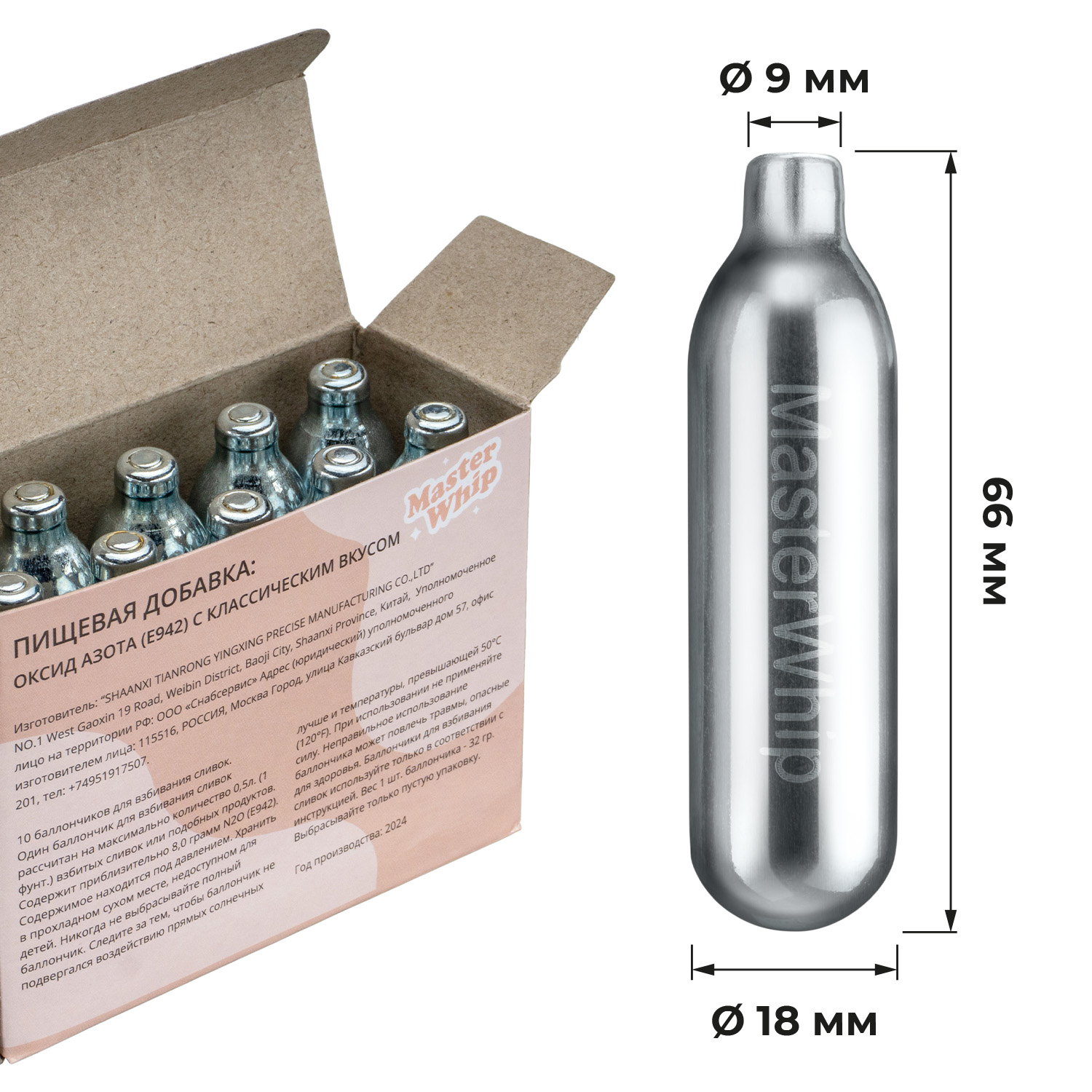 Баллончики для сифона для взбивания сливок (N2O) 10 шт/уп MasterWhip /1/36/