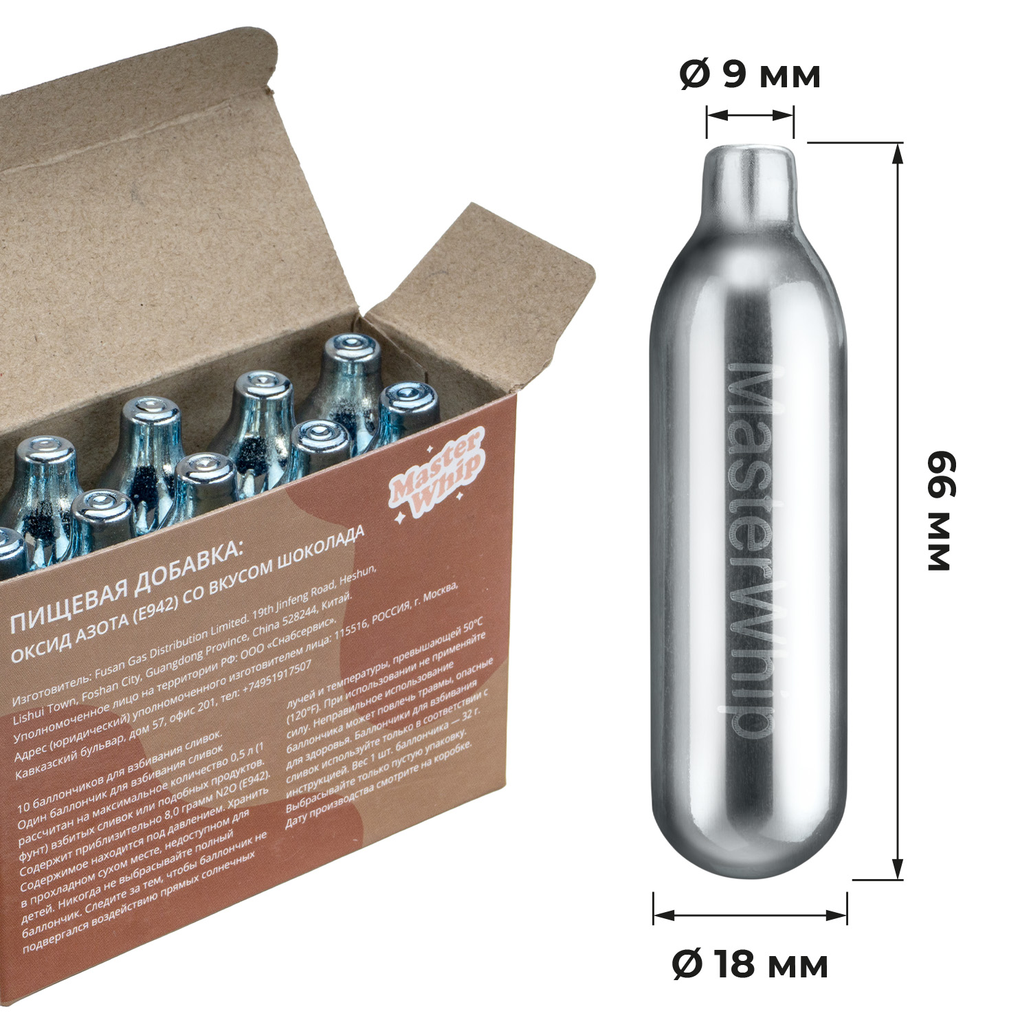 Баллончики для сифона для взбивания сливок (N2O) 10 шт/уп. вкус шоколада MasterWhip /1/36/