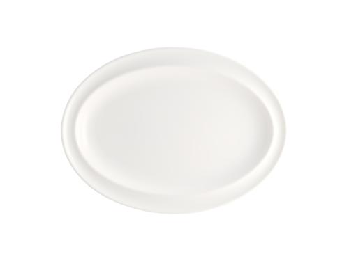 Блюдо овальное белого цвета со сливочным оттенком.