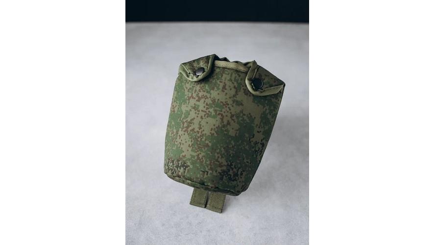 string(256) "149*98*200, вес 103гр. Предназначен для переноски и хранения в походном положении фляги с кружкой. Изготовлен из ткани камуфлированной расцветки.