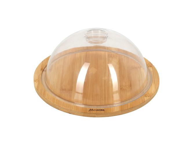 Доска для подачи круг. d=235*10 мм. с пластик. крышкой, бамбук /1/8/