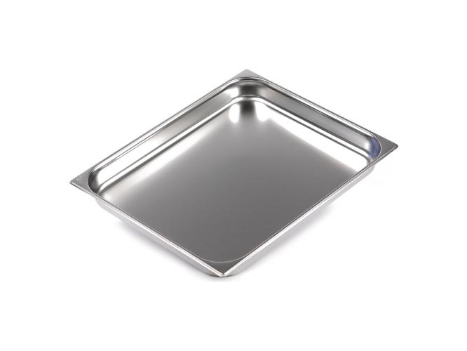 - Стойкость к воздействию высоких температур. Гастроемкости из нержавейки используются для приготовления пищи в пароконвектоматах, для размещения на линиях раздач или в тепловом шкафу/витрине.