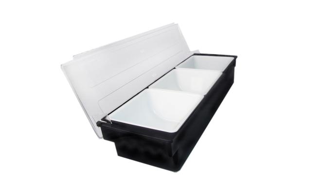 Контейнер для фруктов, специй и соусов 3 отд. по 0,92 л. черный, пластик. MGprof /1/12/ АКЦИЯ