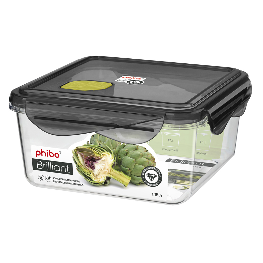 Контейнер для продуктов квадр. 1,15 л. 15*15*7 см. герметичный с клапаном "Бриллиант" /1/12/