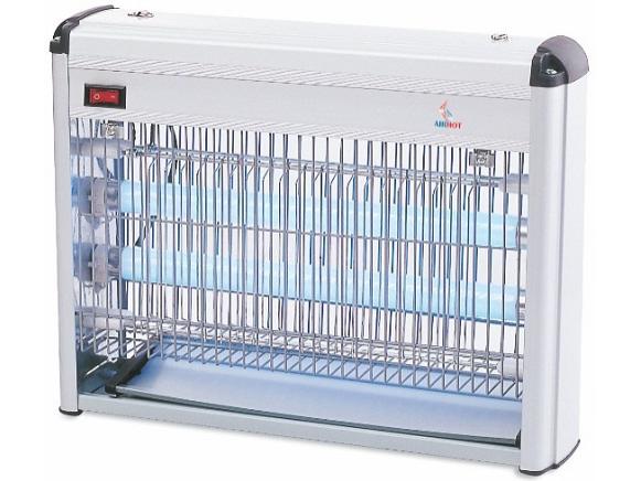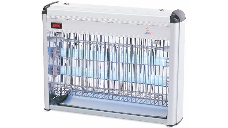 Насекомые, привлекаемые инсектицидной лампой, попадают на прутья металлической решетки, которая находится под напряжением электрического тока.