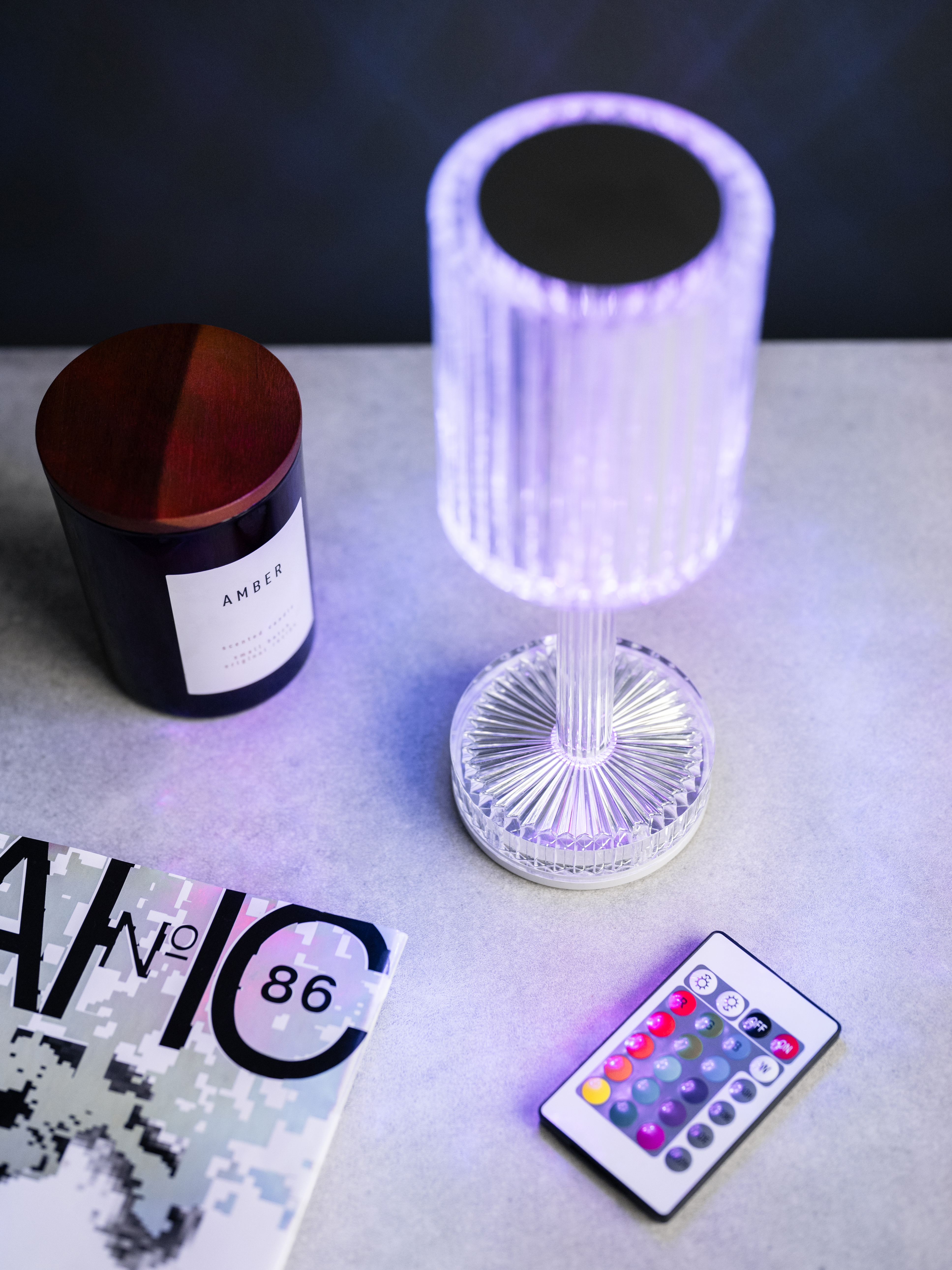 Выполнен из высококачественных материалов, таких как нержавеющая сталь и акрил, что обеспечивает прочность и долговечность изделия. Работает от аккумулятора. Сенсорное управление и пульт настольной лампы с 7 уровнями яркости позволяет легко менять яркость свечения на 15 различных цветов.