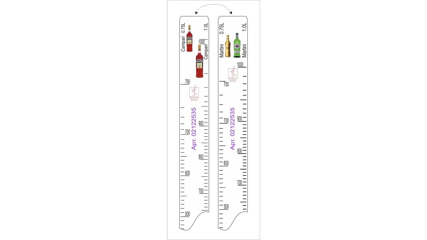 Линейка Campari (0.75 л./1 л.)/ Martini (0.75 л./1 л.) L=28 см. В=2 см. /1/