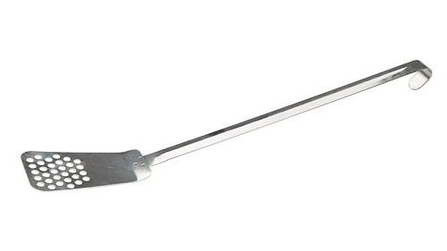 Рабочая часть с отверстиями функционирует по принципу шумовки – через них происходит отток лишней жидкости (бульона, соуса, масла)