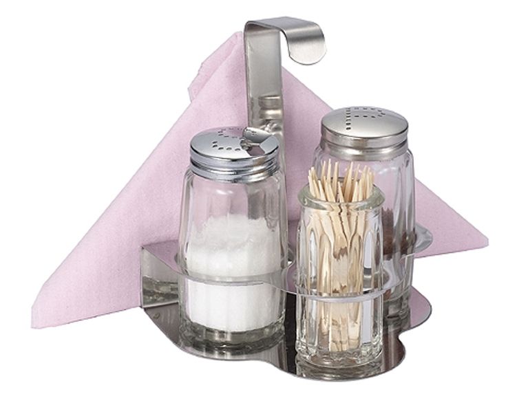 string(262) "Набор предметов для специй с салфетницей, в который входит солонка и перечница + стаканчик для зубочисток.