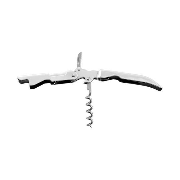 Также есть нож для обрезания фольги на горлышке бутылки и опорного колена для быстрого извлечения пробки с минимальными усилиями.