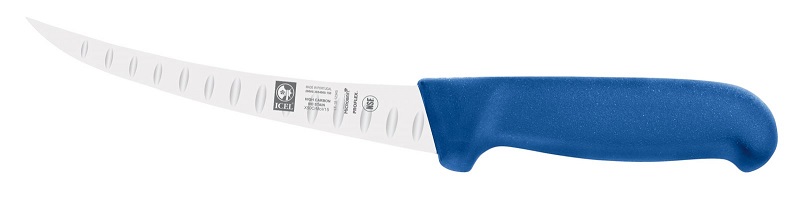 Нож обвалочный 150/290 мм. изогнутый, полугибкое лезвие, с бороздками, синий SAFE Icel /1/6/