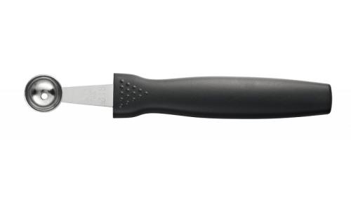 string(575) "Ложка для вырезания шариков – это прочный и долговечный аксессуар, который станет отличным дополнением к вашему набору кухонной утвари. Незаменима при приготовлении десертов и украшения блюд – делает идеально ровные шарики из фруктов и овощей. Также используется для удаления сердцевины томатов, огурцов, перца"