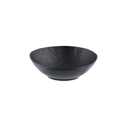 Салатник насыщенного черного цвета со стилизацией поверхности под рисунок листьев лотоса.