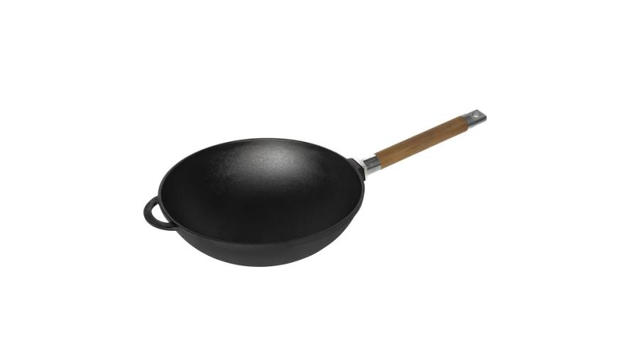 Сковорода Wok d=24 см. h=8,2 см. 2,15 л. чугун со съем дерев. ручкой /1/