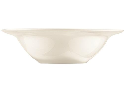 Тарелка белого цвета со сливочным оттенком.