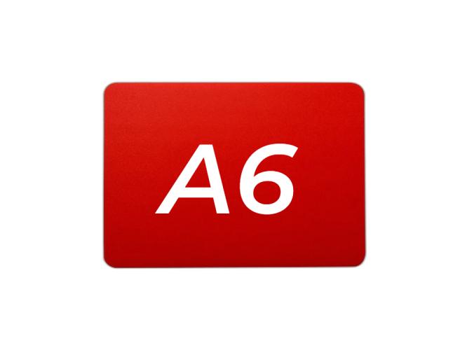 Меловой ценник с двусторонней шероховатостью красный формат А6 изготовлен из полипропилена 0.5 мм. (скругленные углы)