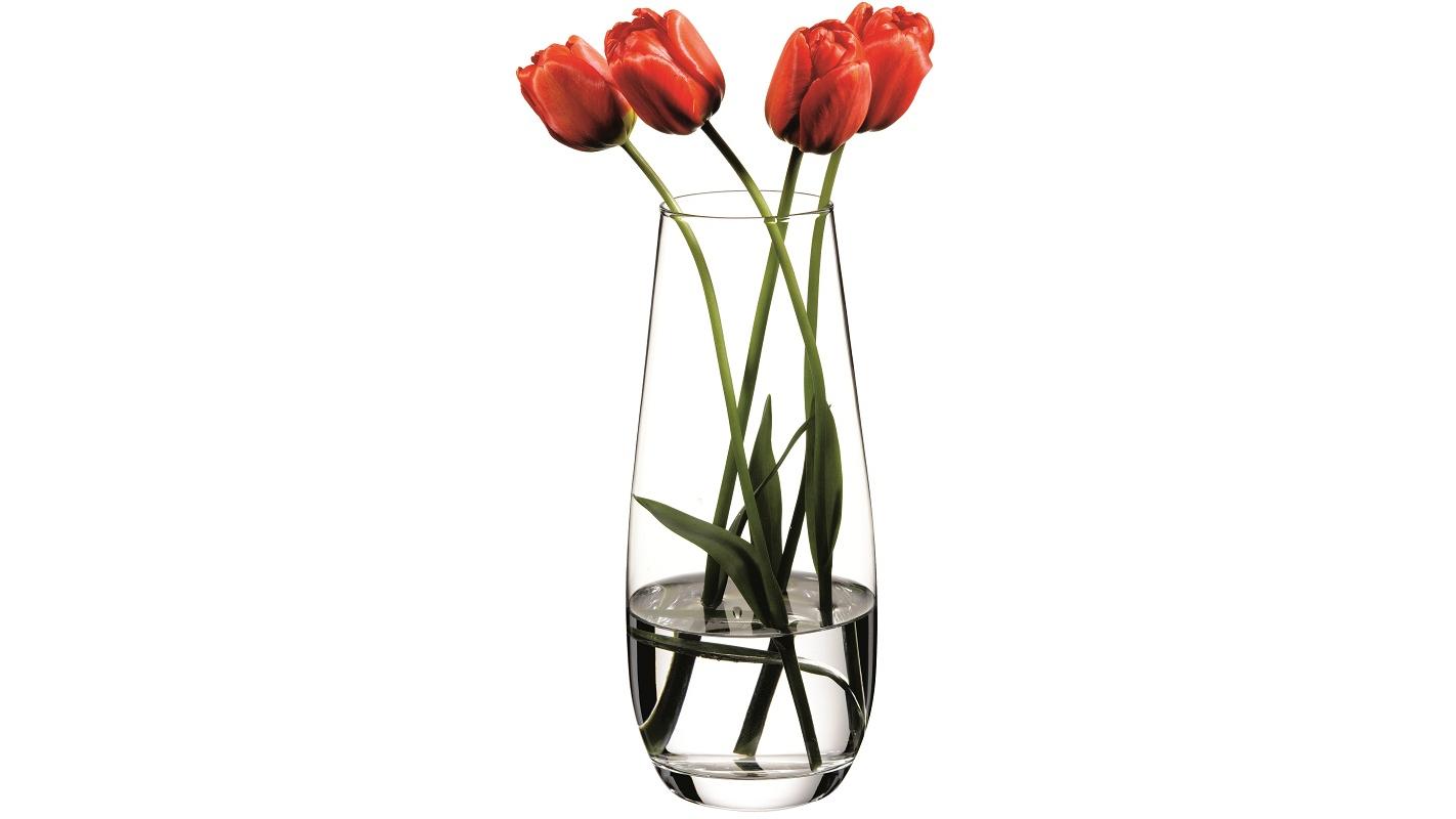 Овальная ваза из прозрачного стекла подойдет для любого интерьера.