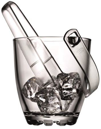 В комплекте есть пластиковые щипцы для порционной подачи льда. Высота ведра всего 13 см, оно не займет много места на столе.